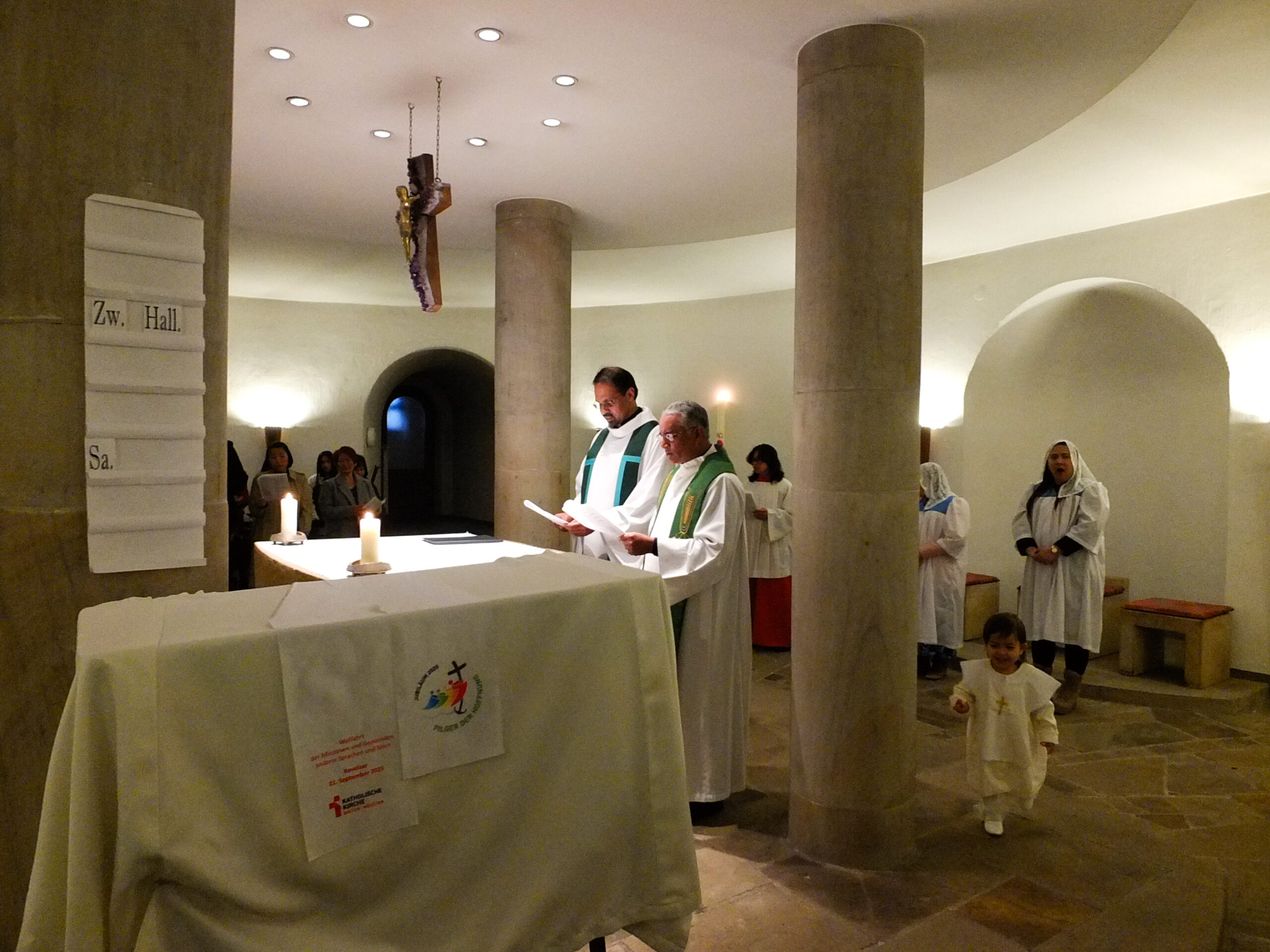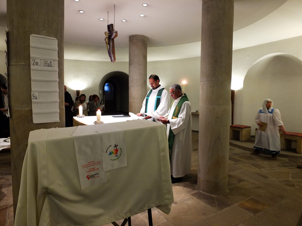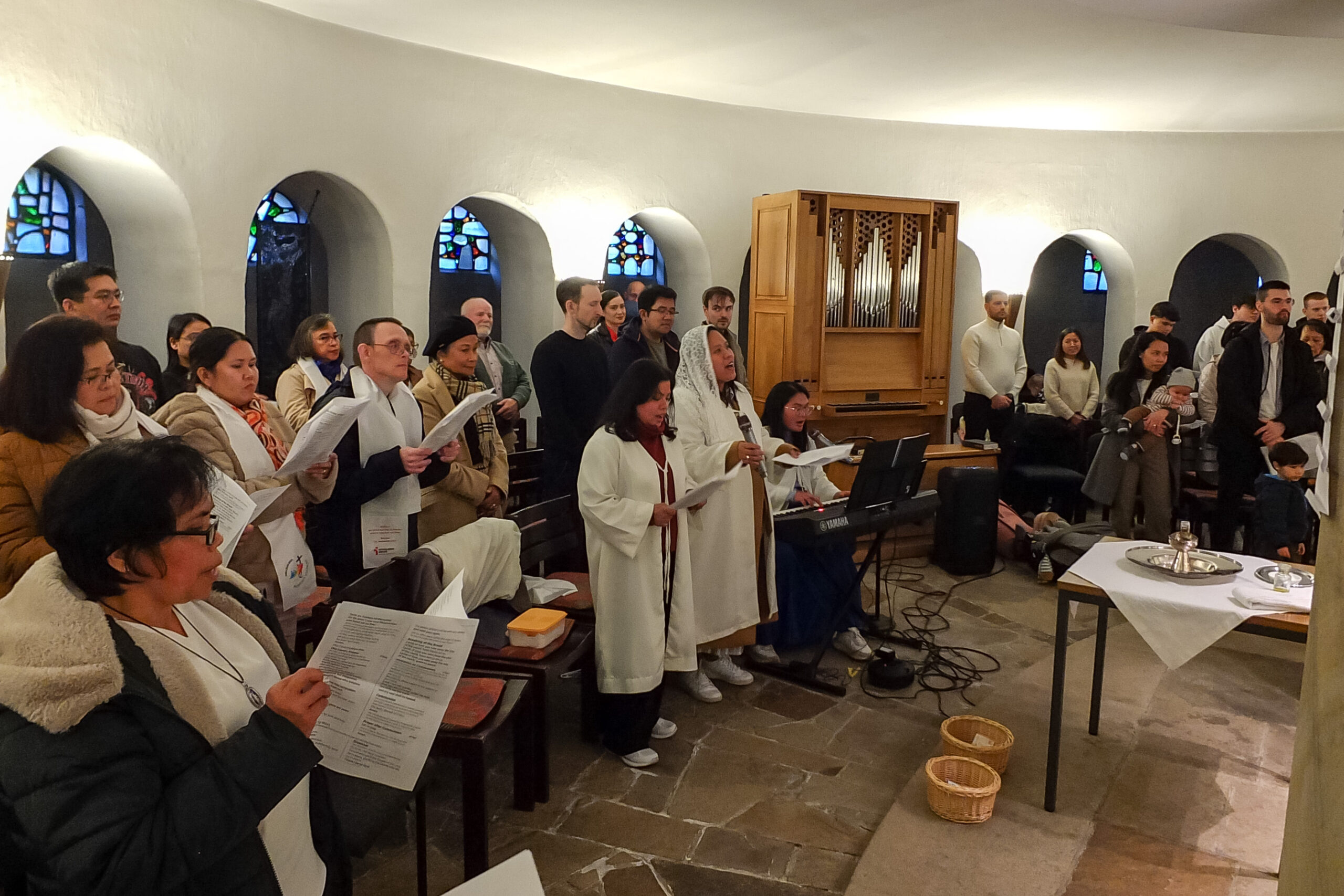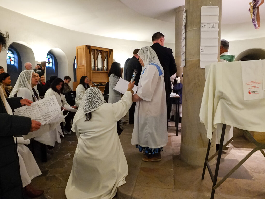 Die Legion Mariens in Emsdetten ist noch ein junges Präsidium – wir berichteten ja schon letztes Jahr davon, wie neue Mitglieder aus der philippinischen Gemeinschaft dort ihr Legionsversprechen abgelegt haben. Bei der Feier zum 4-jährigen Jubiläum kamen somit auch viele aus dem umliegenden Münsterland, die mit der philippinischen Gemeinschaft verbunden sind, und deren Familienangehörige. Die hl. Messe wurde in englischer Sprache gehalten, die zweite Amtssprache auf den Philippinen. Lieder während des Gottesdienstes wurden in Englisch und Filipino gesungen. Neben dem Gedenken für die Gemeinschaft der Legion Mariens wurde auch ein Kind getauft. Anschließend kamen die Teilnehmer zum fröhlichen Beisammensein in das Pfarrheim. Für das leibliche Wohl hatte die philippinische Gemeinschaft reichlich gesorgt.